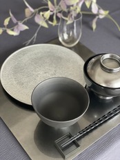 まるでいぶし銀のような独特の風合いは、和食にはもちろん、洗練された洋食のシーンにも驚くほど馴染み、料理の色彩を一層引き立てます。